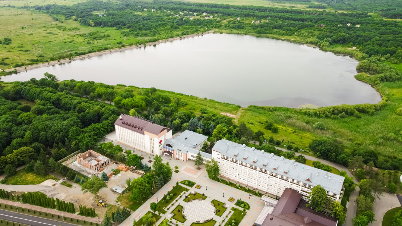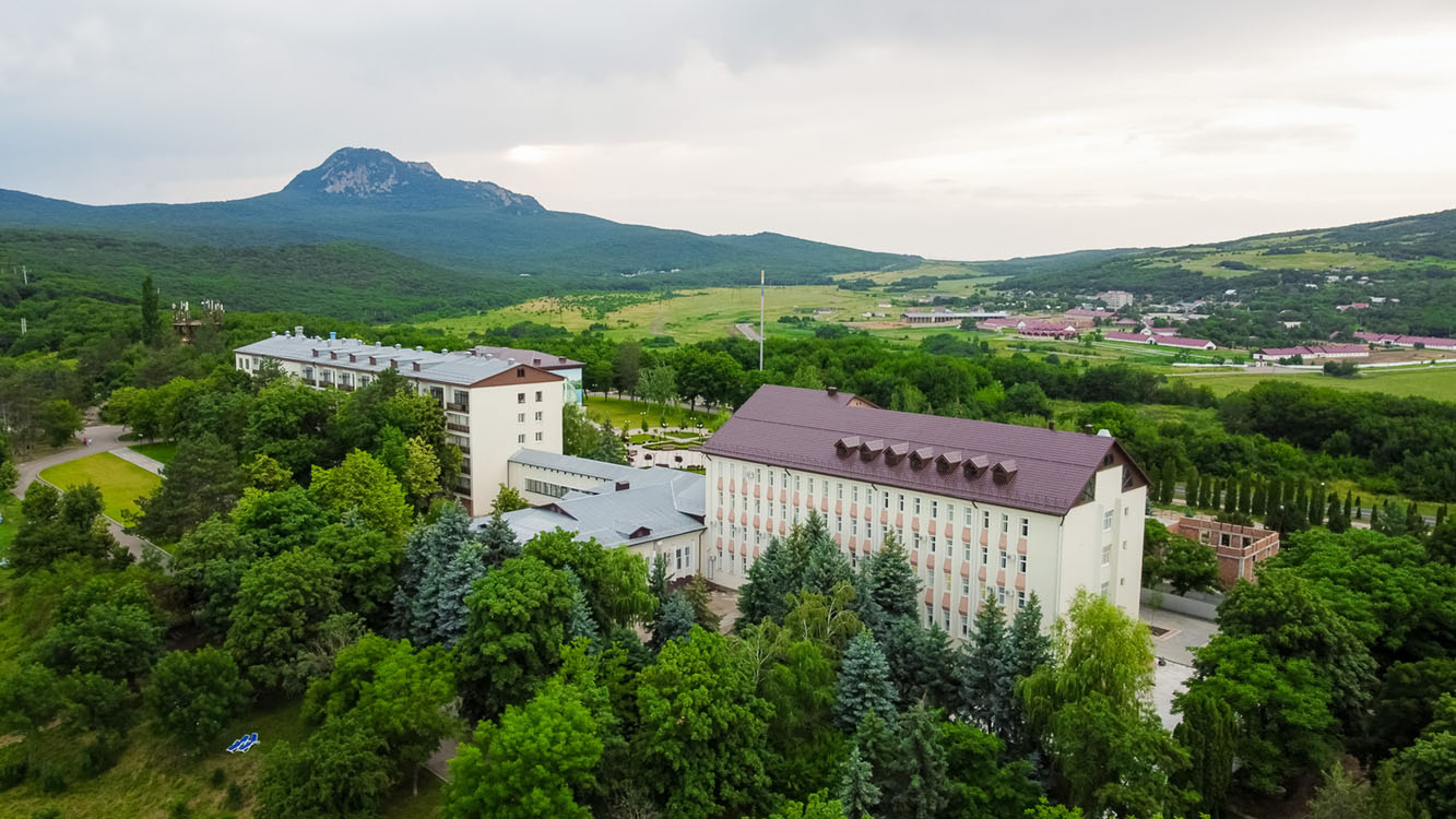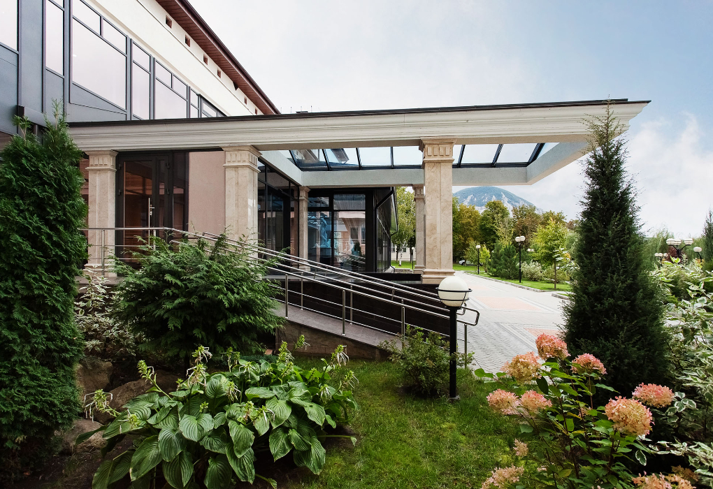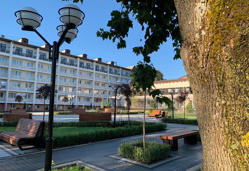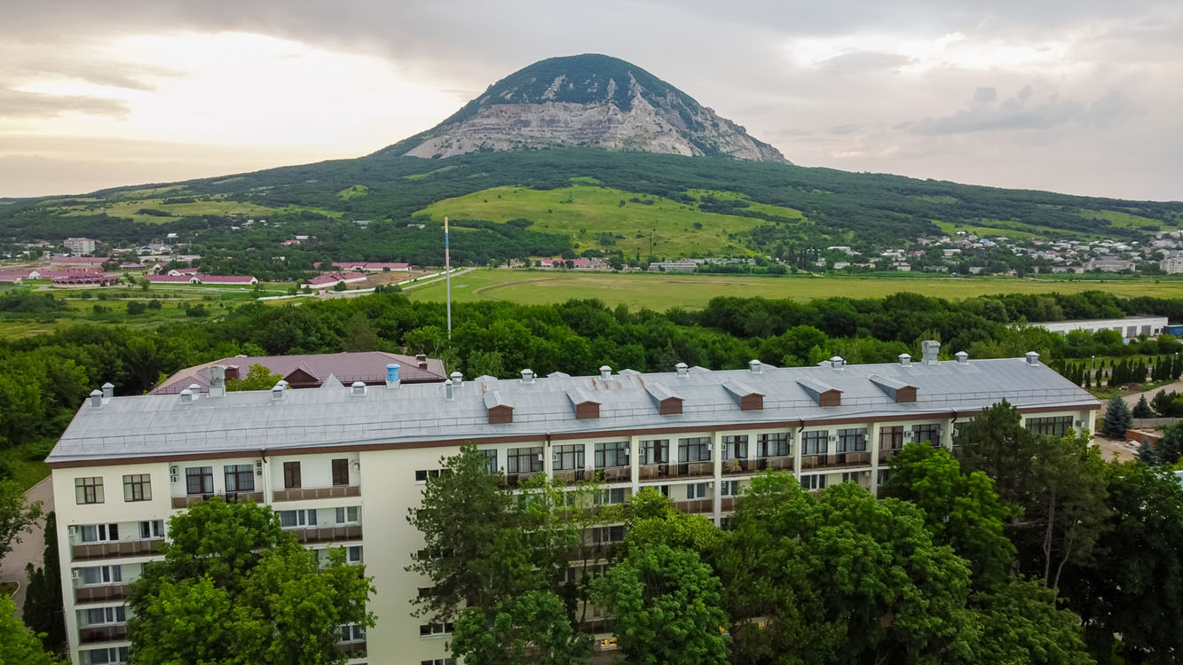 Санаторий расположен в живописной Новотерской долине на берегу озера в 5-ти км от Лечебного парка г. Железноводска, с которым санаторий соединяет терренкурная дорожка.